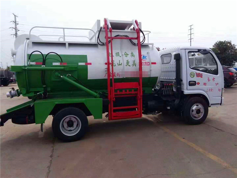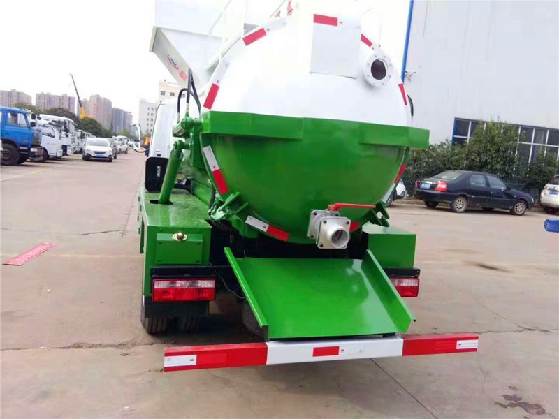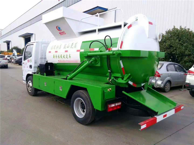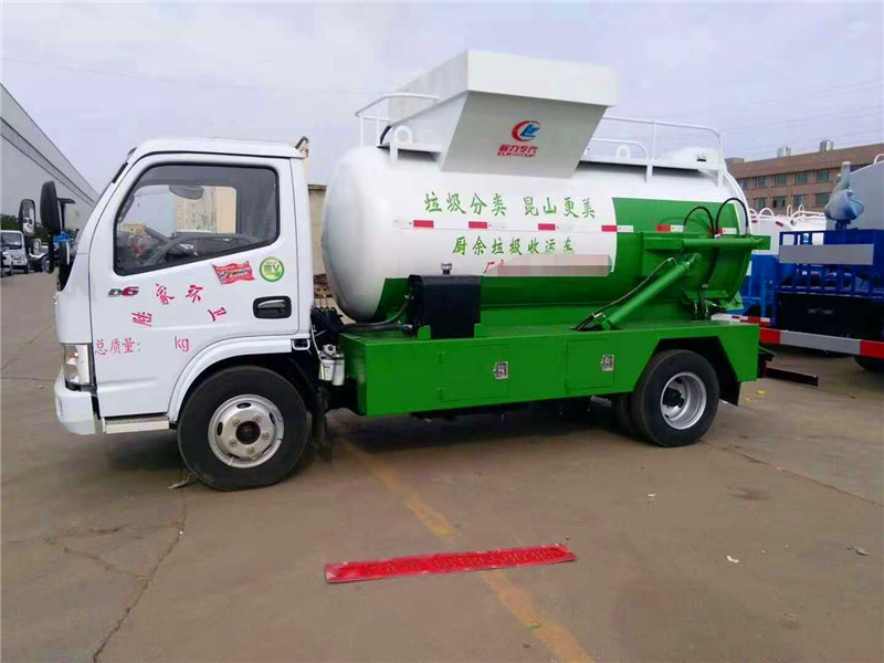 罐體容積4~5m3,罐體厚度4.5mm,配備120L/240L掛桶提升翻轉機構,液壓系統,后蓋液壓鎖緊開啟,罐體可以舉升自卸,尾部帶自流閥;用于運輸液態垃圾,其特點操作簡單,密封性好,無泄漏,無異味;可選裝固液分離功能,推板擠壓功能,常用于餐館的垃圾轉運處理 。