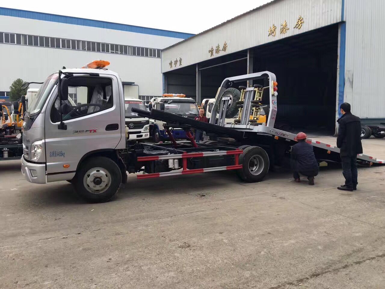 我廠生產的清障車可分為托吊分離型、托吊聯體型、平板背載型、平臺升降型。