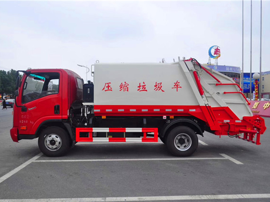 廂體材料為武鋼優質炭鋼,厚度為邊5mm,廂體容積為6立方米。由裝料機構、壓縮機構、卸料機構、油泵、油箱、控制閥等組成的液壓機構組成。裝料機構由支架、連桿機構、凸輪、掛鉤等組成,在油缸作用下,將垃圾桶內的垃圾自動翻轉倒入料斗內。新款有9支液壓扭制動,不帶副壓板,液壓控制操作系統為電動控制和手動控制。壓縮式垃圾車具有自動反復壓縮以及蠕動壓縮功能,壓縮比高、密封性好、裝載量大﹑操作方便、環保性好﹑整車利用功率高等優點。作業自動化,垃圾收集方式簡便、高效