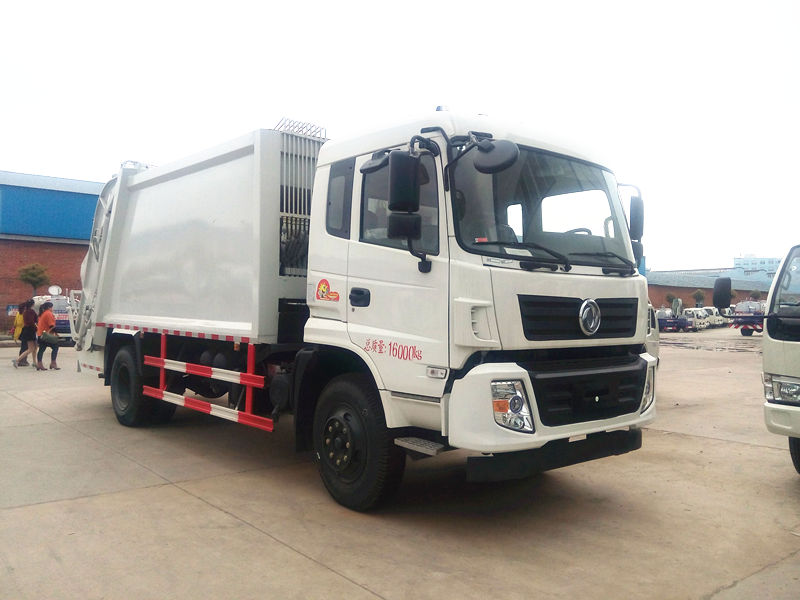 東風專底壓縮式垃圾車,采用原裝東風EQ1160GD5DJ型號的載貨汽車底盤,承載力更強,東風專底排半駕駛室,玉柴160馬力國五發動機,國五排放標準,五檔變速箱,3950mm軸距,輪胎采用9.00R20鋼絲胎。配原廠空調、方向助力、離合助力、ABS防抱死系統、減震座椅,油剎,帶真空助力泵,帶USB接口收音機,配置分配合理,實用性強。