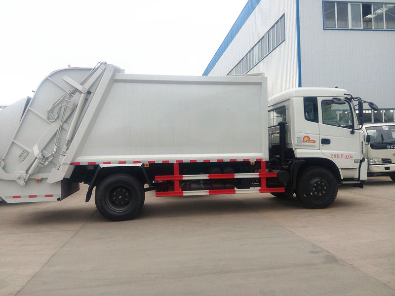新款平面弧形廂體,廂體材料為武鋼優質碳鋼,有效壓縮容積10立方,外形尺寸7760*2500*3300mm,PLC一鍵操作控制,手電一體操作模式,兩側雙電控,帶駕駛室內操作,底板支撐加強,雙向壓縮,開放式易清潔污水箱。壓縮式垃圾車組成部分由密封式垃圾廂、液壓系統、雙操控系統、多元化翻倒機構、操作系統組成。舉升油制缸(2支)垃圾廂可自吊上放下,上下一次工作循環時間≤50S。