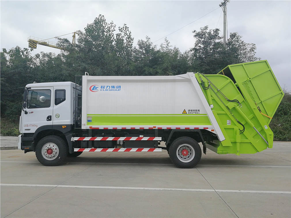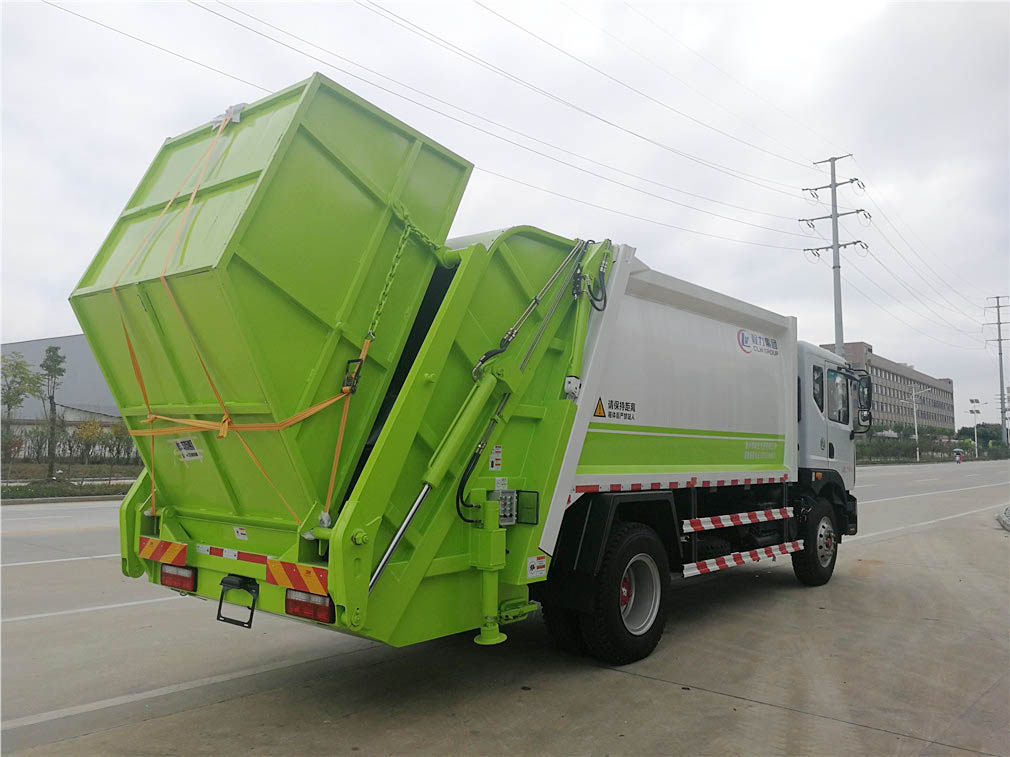 東風D9壓縮垃圾車上裝箱體是用優質碳鋼板,邊板4mm厚,底板5mm厚,箱體后部帶弧型料斗,帶液壓翻轉機構,副壓縮,帶推板功能, 整車垃圾是從后面裝垃圾,向車駕駛室前面壓縮,然后由推板,把垃圾推車,整車帶PLC一鍵控制(含駕駛室操作)是目前垃圾車用途比較廣泛的 一款車型。