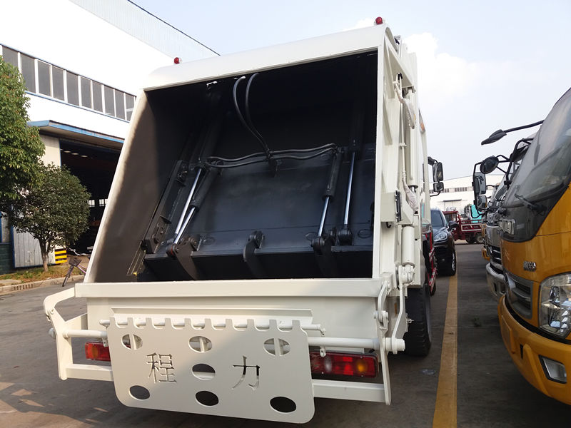 壓縮式垃圾車具有自動反復壓縮以及蠕動壓縮功能,壓縮比高、密封性好、裝載量大﹑操作方便、環保性好﹑整車利用功率高等優點。作業自動化,垃圾收集方式簡便、高效。作業自動化,垃圾收集方式簡便、高效。后翻轉機構選裝:1、掛塑料桶式翻轉機構;2、掛鐵桶式翻轉機構;3、擺臂式翻轉機構; 4、簸箕斗式翻轉機構。