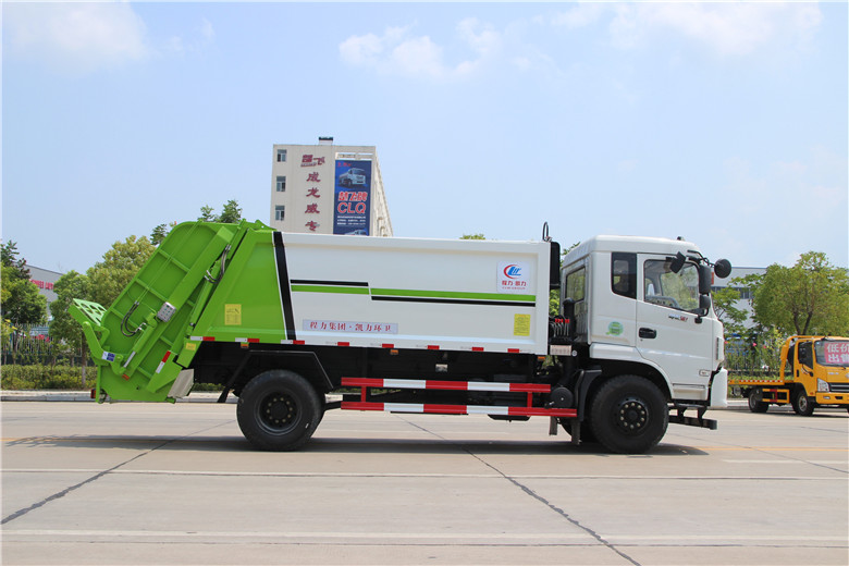 新款平面弧形廂體,廂體材料為武鋼優質碳鋼,有效壓縮容積12立方,PLC一鍵操作控制,手電一體操作模式,兩側雙電控,帶駕駛室內操作,底板支撐加強,雙向壓縮,開放式易清潔污水箱。
